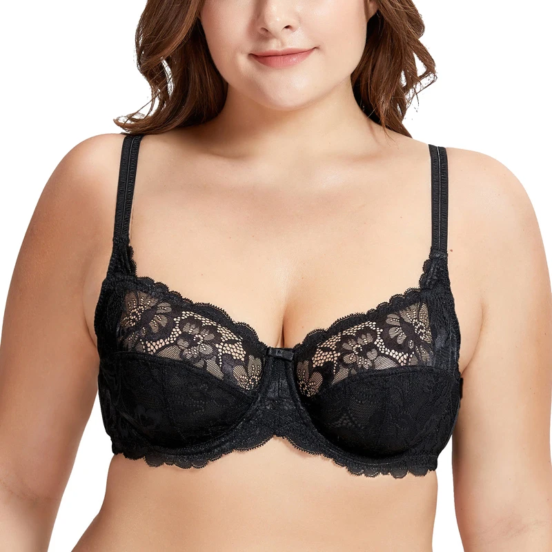 Best Seller Sexy Women's Full Coverage Lace Sheer Bra Non Padded Underwire Balconette Plus Size Lingerie 34 36